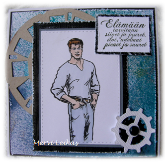Hi, the header of this posting is Spring Girl, isn't Finnish odd language! Ok I have been cleaning stuff from cupboards and attic, thrown a lot of things away or to the recycling. I found lots of old stamped images from those early times. This is one, don't know whose stamp, but it is quite cute for spring celebrations. Text says "congrats", colouring with Copics. Done this at the cottage, papers are from dash too.